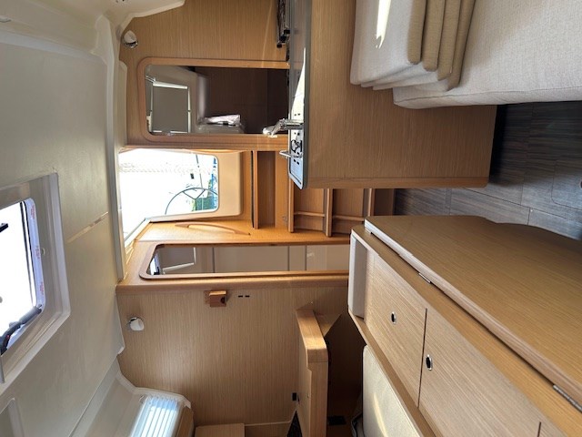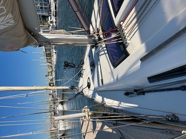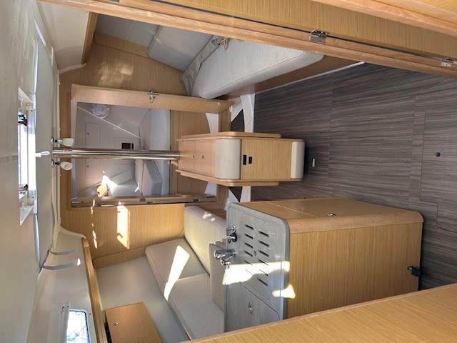 grand voile full batten, gennacker, panneaux solaires, armement de sécurité +6 milles, bimini, accastillage de spi, réglage de chariot de génois, centrale de navigation, batteries x3, hélice repliable, réservoir d'eau noires